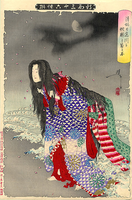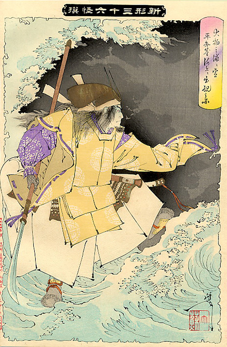 大物之浦ニ霊平知盛海上に出現の図