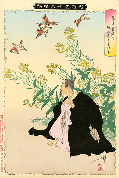 藤原実方の執心雀となるの図