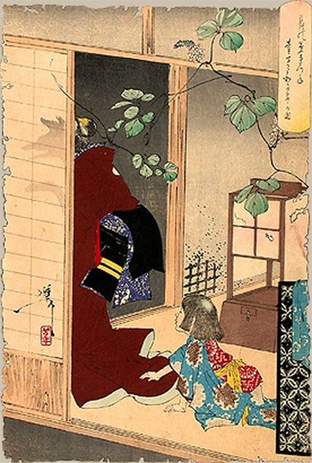 絵の枠が虫食い状になっており、これは芳年が神経症に苦しんでいたための幻覚を描写したものとされています。
