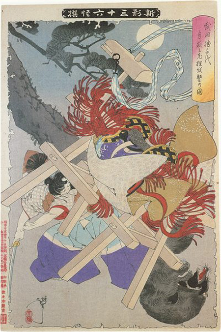 武田勝千代月夜に老狸を撃の図