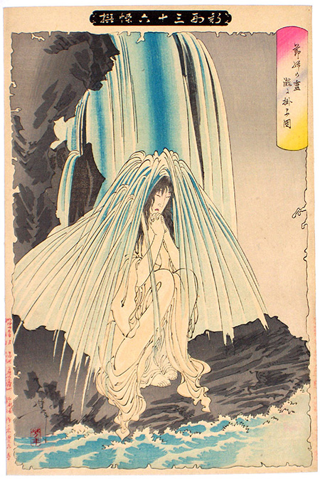 節婦の霊滝に掛る図